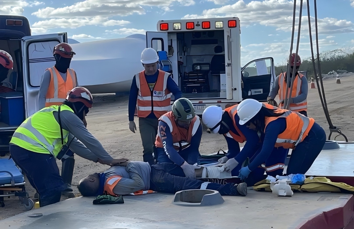 為扎實推進2025年“安全生產月”活動,進一步增強作業人員風險辨識與應急處置能力,近日,三峽巴西公司帕爾梅拉項目部聯合金風科技開展風機吊裝機械事故實戰應急演練。